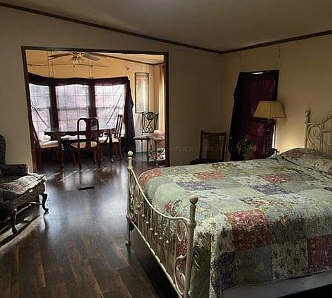 This manufactured home has 3.3 acres, 4 bedrooms, large kitchen, living room, primary bedroom with sunroom, large bathroom. Home needs tender loving care.
