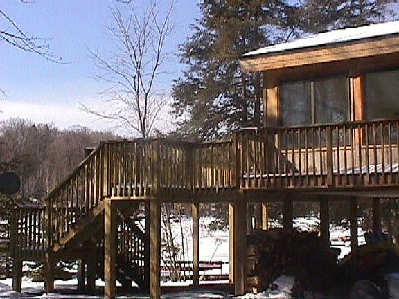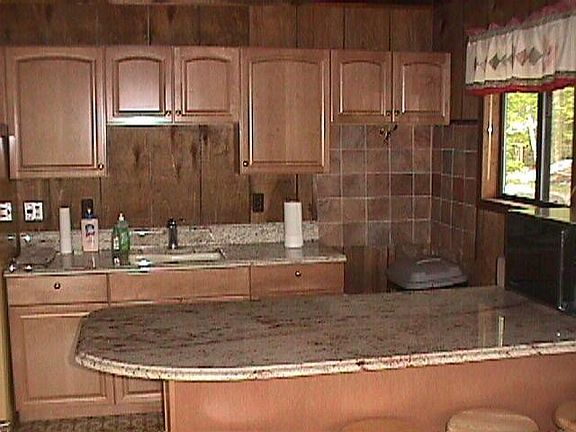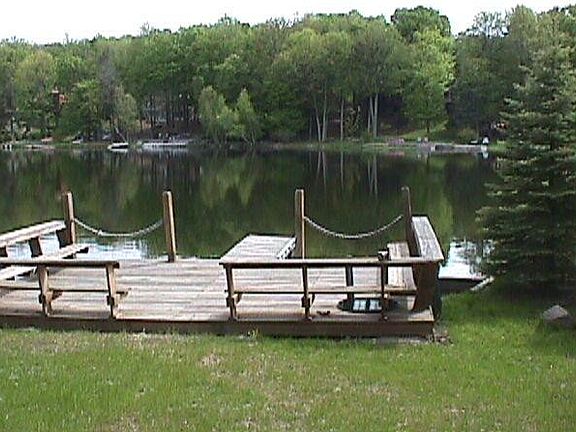 Power Boating Lakefront 155 ft of Lake Views and Privacy What are you waiting for??This Lakefront Chalet has a lot going for it. Privacy 155 ft of lake frontage on a quiet cove of the Hideout's Roamingwood Lake. New Family Room. New Kitchen,New Carpet,throughout main floor.And best of all reasonably priced at $425,000, Eating Area: Modern KT
