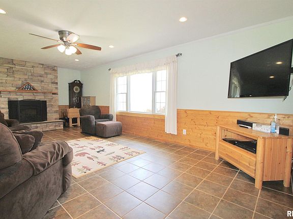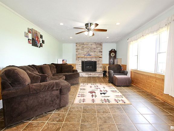 Very nice UPDATED Country Home on 5 acres. Open floor plan for easy entertaining. Updates include new windows, roof, gutters and siding 2014. New HWH . All new flooring throughout, Laminate, tile and vinyl Natural wainscoting and stained 6 panel solid wood doors make this a very warm and inviting home. Enjoy the BEAUTIFULl updated wood burning fireplace with NEW stone front and new chimney cap. Complete bath remodel with double sinks, 2020. Unfinished full Basement to allow for extra room to expand if desired. Private deck to enjoy the Sunsets and watch the wildlife. New 3 car detached Bullock garage 2018 for Hobbies or car enthusiast. Barn for those who would like to use property as a mini farm. 3 acres currently leased to local Farmer through the 2020 harvest season. All crop proceeds to the Farmer currently leasing the property through 2020. Swing sets do not stay.