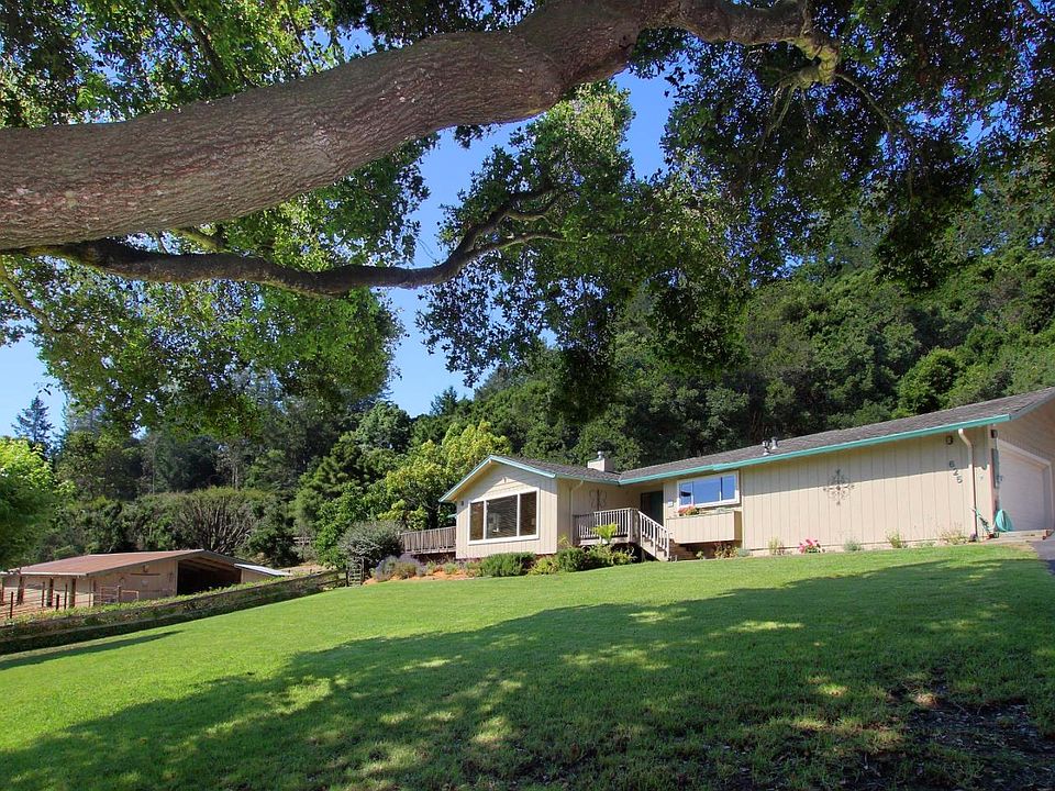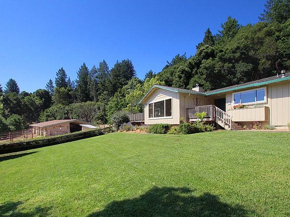 Looking for horse property? Look no further. This sunny nearly 5 acre, expansive single level Ranch Style estate is the perfect home your 2 and 4 legged family members. A 4 stall, drive through covered barn with turnouts, steel fencing and hay storage. All stalls have lights and an auto water supply system. Fenced pasture, horse arena, stand alone tack room and wash rack. Access equestrian easements and trails from property. 48 owned solar panels and high speed internet service. Heated pebble bottom pool, hot tub, RV parking with an overflow parking area. Over sized two car garage with workshop area. Spacious home with a huge master bedroom, walk in closet, natural stone bath room, heated floors, soaking tub with bubbles, and a curb-less walk in shower. Huge kitchen with new granite counter tops, large dining room with French doors, adjacent Butlers Pantry and a living room with vaulted exposed beam ceilings and stone fireplace provide a great area for stretching out.
