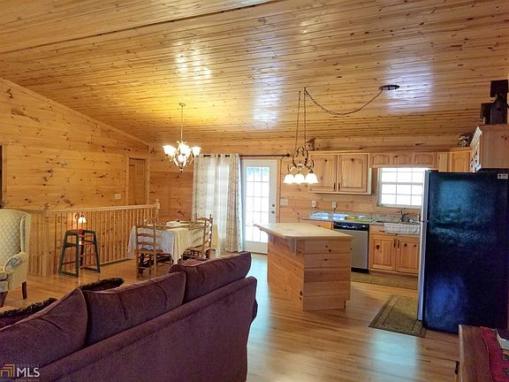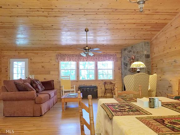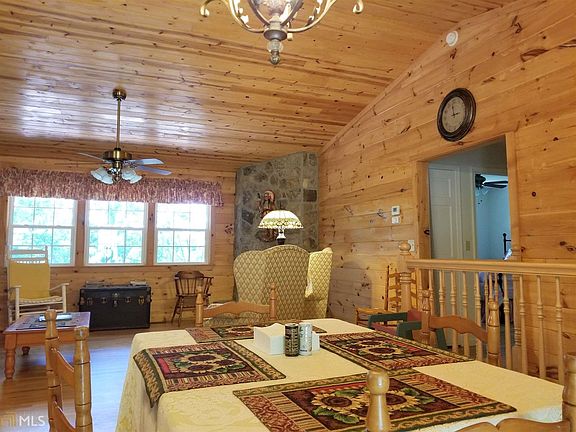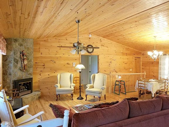 Private and Secluded. This log siding / stone home is located on 14+ acres of wooded privacy. The main level has an open great room to the kitchen and dining area. Granite countertops. Stainless steel appliances. Wood floors and ceilings. Gas log fireplace. The main level is a split bedroom plan with a large master featuring a walk-in shower. Two other bedrooms share a large bathroom. Lower level is finished with a cozy sitting room, large second master Bedroom and bath. Home also has an over-sized two car garage. Covered front porch and open deck on back. Paved street and driveway. Gate at drive. Property backs up to 14,700 acres of US Forestry Lands! Currently has seasonal winter view, but could have an awesome view with some tree cutting.