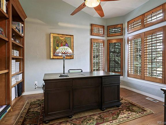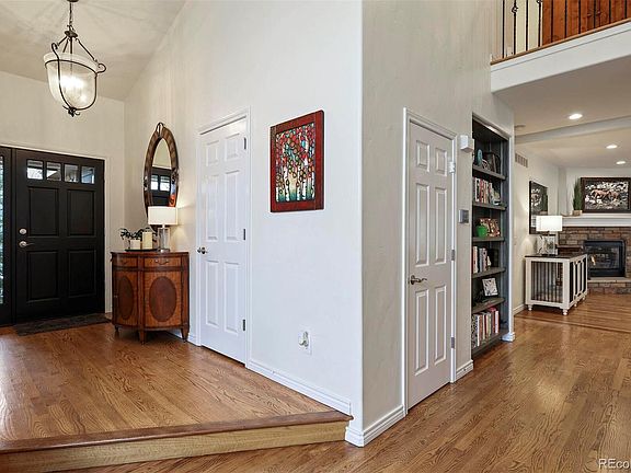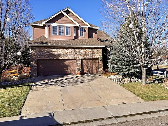 Just the opportunity you are looking for! This beautiful Castle Pines semi-custom, highly updated Redstone home has a brand new gorgeous white gourmet kitchen with stainless steel Jenn Aire appliances. Light and bright interior. Hardwood floors throughout the main, upstairs hallway and master bedroom. Beautiful Study with French doors and bookcases. Upstairs has huge master suite with fireplace and outdoor deck. 4 additional upstairs bedrooms with 2 bathrooms. Downstairs is very light and has totally upgraded recreation area with theatre area and garden level windows, custom stacked stone full wet bar with dishwasher, sink and fridge and wine storage, plus, Pool Table and Theatre area. There is a beautiful guest bedroom, bathroom with steam shower and loads of additional storage. Custom wood plantation shutters throughout the home. Outdoors has inviting partially covered deck and seating areas and a custom stone firepit patio as well as trampoline play area and basketball court. Exquisite mature privacy landscaping flourishes in the summer. Finished 3 car garage has epoxy floor and custom cabinets. Pool Table and all accessories are included