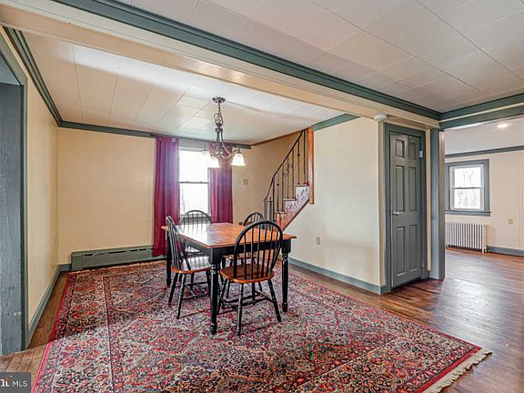 This updated 3BR home is situated in a 4.53 acres secluded setting in the Boyertown School District. From the enclosed porch entry you'll find original hardwood flooring, beadboard wainscotting, custom trims, and beautiful wood ceilings. The updated kitchen includes a gas range. A door from the kitchen opens onto a pavered patio. Upstairs are more of those hardwoods, 3 generously sized bedrooms and an updated bath. An oversized 2 car detached garage is a must see and has plenty of room for all your big toys. Exterior updates include a metal roof, vinyl siding and two pavered patios.