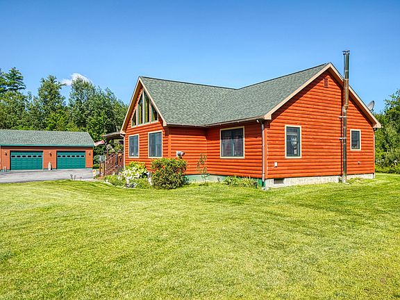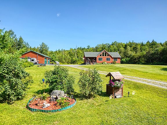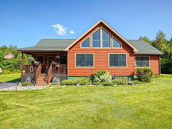 Warm and welcoming, the soft rustic ambiance of this 2013 contemporary ranch can't help but bring you in with awe. The exterior wood siding and interior details of natural wood railings and half log steps to the loft only add to the look and feel of a true log cabin. The living room area is graced with peak fitted, floor to ceiling windows, allowing for natural light throughout the open concept living space. Two bedrooms on the main floor including an oversized primary with full ensuite along with a dedicated laundry area make this all you need for single floor living. Granite counter areas in both bathrooms. A charming loft provides an additional and comfortable sleeping area. The oversized two car garage will give you the space for that- plus other recreational machines and/or dedicated work area. Set back off the road you will enjoy the feeling of ownership of the sprawling yards front and back. As part of the 16.53 acres, that includes deeded access to Cold Brook for fishing and hunting. Enjoy the serenity of the area, with public parking for Belgrade Lake just a few minutes away. Sellers are conveying the hot tub; many of the other interior furnishings may be available for your consideration. The King size log bedroom furniture can be negotiated individually.