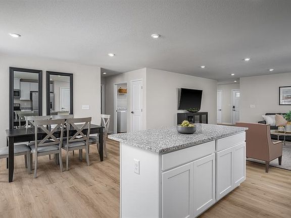 Dining areaSecondary bedroom wingLaundry roomOpen concept great roomPrivate bathroomWalk-in closet