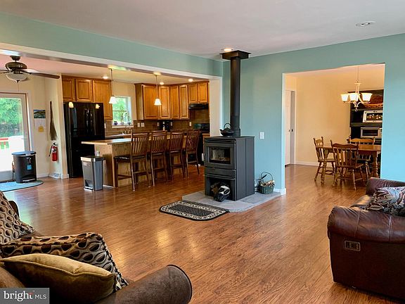 - Ceiling Fan(s), Kitchen Island, Pantry, Dining Area, Eat-in Kitchen, Open Floorplan, Wood Stove, Wood Floors, Entry Level Bedroom, Family Room Off Kitchen, Primary Bath(s)