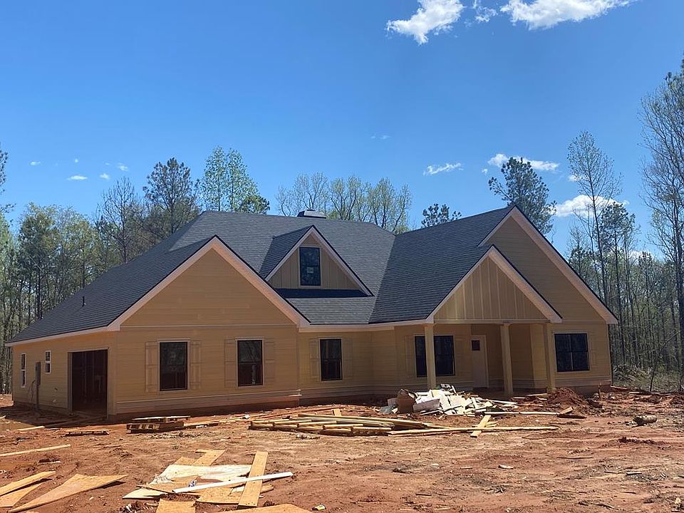 The THEODORE Plan is located on a beautiful 5.07 acre lot in CARROLL COUNTY. This lovely, designer inspired MODIFIED RANCH home has many wonderful features! Owner's Suite + 3 additional bedrooms on the MAIN LEVEL. Gorgeous dining room with Diamond Patterned Statement wall & Faux Wood Ceiling Beams! Rustic Manor - Knotted Chestnut flooring throughout the common areas on the main level. Wood burning fireplace with brick hearth - Super Open Kitchen with Central Island, Upgraded Stainless appliances - Upstairs has either a 5th bedroom or OFFICE SPACE with a 4th full bathroom. Covered back patio to take in nature's beauty or for outdoor entertaining. Lovely on trend designer touches throughout. NEW HOME WARRANTY!