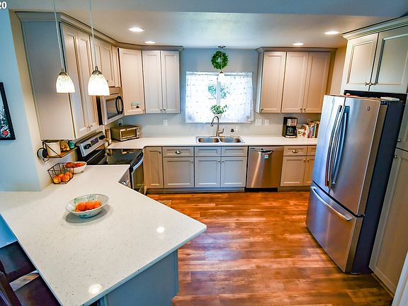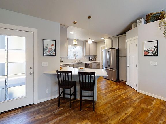 Beautiful new home finished in 2019 in a quiet neighborhood in Cottage Grove. 3 bedroom 2 bath beauty sits on a large city lot with mudroom entrance in laundry room, and covered entry with gorgeous custom front door. Vaulted ceilings with recessed lights, peninsula in kitchen with eat bar and pendant lights, quartz counters, large pantry. Luxury Vinyl Plank Flooring in main living areas and carpet in the bedrooms. Efficient Ducted/ductless heat pump combo has 36,000 BTU. 1 yr warranty included.