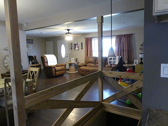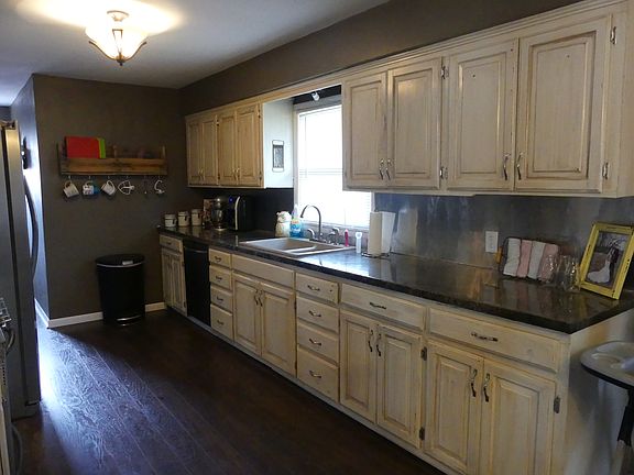 Newly remodeled ranch style home with an open floor plan. The main floor consist of 3 large bedrooms, 1 bathroom, open concept kitchen/dinning/living room and a laundry room. The basement consist of a large family room, 1 bathroom, 1 (non-confirming) bedroom, storage room, and a furnace room. Other features of this home include an attached garage, patio doors leading out to a cement patio, stainless steel appliances, new windows, new gutters, new garage door, tin roof, small utility shed, large back shed, large fenced in yard, central heating and air. This home is located in a quiet neighborhood only a block away from the grade school, pool, and park!