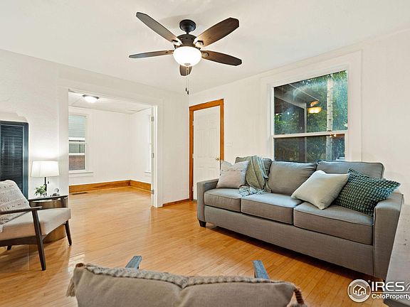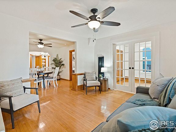 On a charming and quiet street in Downtown Loveland, this beautiful place invites you to come in and call it home with three bedrooms and one bathroom. Make your way up through the covered front porch, and step in to find a bright and cheerful home. New paint, beautiful hardwood floors, arched doorways, and built-ins show the home's character and charm. Large windows, many of which have been replaced/updated, flood the home with natural light. French Doors open to the front bedroom, which would also serve as an ideal office space. The spacious dining room provides room for gathering to enjoy meals or game nights at the kitchen table. The newly updated kitchen boasts new cabinets, a gas range/oven, hood, countertops, backsplash, double basin sink, and hardware. Tiled floors run the length of this large galley kitchen, with room to extend kitchen cabinets, add a seating space or place your indoor plants to soak up the rays of sunshine from the door that leads to the back patio. The laundry room connects to the kitchen also, with tiled floors and upper cabinets for additional storage. Head outdoors to grill and entertain on the large back patio overlooking the big yard. Additional parking and storage are found in the detached garage, carport, and storage shed. Just minutes away, enjoy shopping, dining, entertainment, community events, festivals, and the Loveland trail system. Enjoy all that Downtown Loveland and the Foundry offer, including a theatre, the public library, Chilson Recreation and Senior Centers, and the Foote Lagoon Amphitheater. Connect yourself to much of Loveland through the 21-mile loop trail system nearby or enjoy a short jot over to River's Edge Natural Area and Fairgrounds Park.
