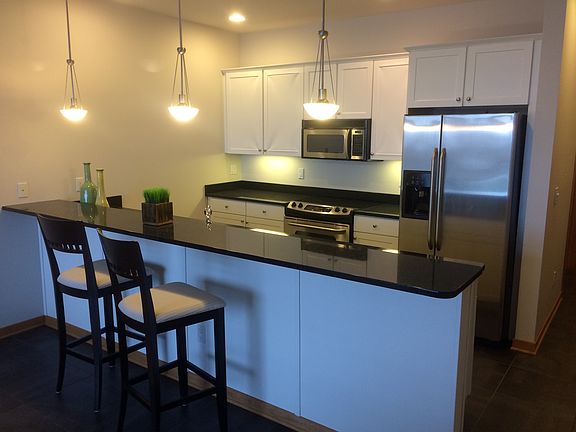 This spacious condo has a large bedroom suite with walk in closet, jetted tub and tile shower. There is also a large office/den (no closet). The living room with wood floors walks out to a large balcony with lake and golf course views and has a gas grill hook up. The kitchen has Granite counters and tile flooring. This condo also has a nice 2nd bath with shower and a laundry room. Tenants pay electric with all other utilities included in the rent! 1 garage parking stall, 75 channel HDTV package and high speed 40 MBps internet are all included in the rent. The building also has a fitness room, resident lounges and roof top terrace. Condo can be furnished and other units are available for finish as a custom rental.