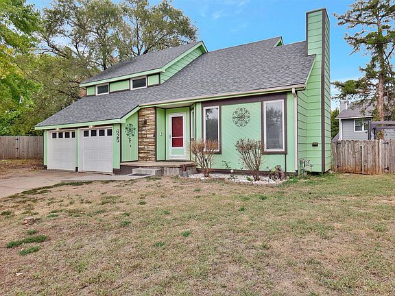 Great opportunity for a lovely home in Derby. Featuring 3 bedrooms, 2 bathrooms, and an attached 2 car garage this home is ready for you to view! When you walk in you will notice the tall vaulted ceilings with floor to ceiling stone fireplace in the living room. Original hardwood floors in the formal dining room and kitchen on the main level. Kitchen is oversized with white cabinetry and overlooks the backyard. Upstairs houses the 3 large bedrooms and 2 full bathrooms. Hall bathroom features a jacuzzi tub perfect for relaxing. Basement is partially finished with a family room, and a very large unfinished storage room. Backyard is very unique and wraps around the side of the house. Lots of space for gardening or to finish the small pond. Large shed for additional storage. Don't miss out on this great opportunity!