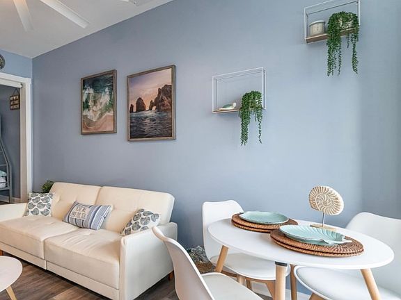 Relax with your whole family at this across from the beach nicely decorated and upgraded condo. Includes one queen size bed. There is an outer cove off of living room with a bunk with full-size bed and upper twin bunk walking distance to the Garden City pier short drive to the marsh walk in Murrells Inlet. I am plenty of great shopping and restaurants to choose from you can watch the beautiful sunsets over the marsh at your front door. And the sun rises out your balcony facing the beach. Only avail until april