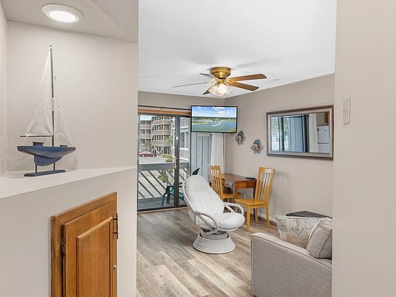This one bedroom one bath condo is a must see! Enjoy the ocean breeze from your balcony (12x5)! Furnished and ready now. This condo serves well as a primary residence, secondary home or investment property for both long and short term rentals. The reasonable HOA dues include building insurance and all utilities with exception of electric. Professionally painted 12.19.2022 and HVAC new in 2019. New lvp flooring throughout, new TVs in living area and bedroom, new couch in 2021. A large storage locker measuring 36 x 22 x 36 conveys, perfect for beach and fishing gear. Across the street from the ocean with your back door overlooking the marsh, you are surrounded by beauty! With the convenience of a fabulous location, under building parking, grilling areas and a lovely pool with hot tub make 108B, THE choice!