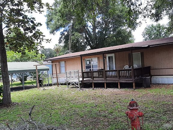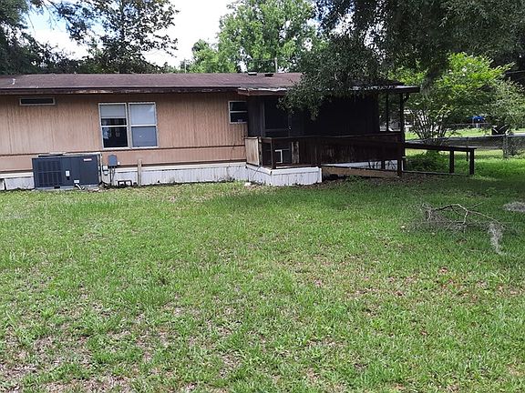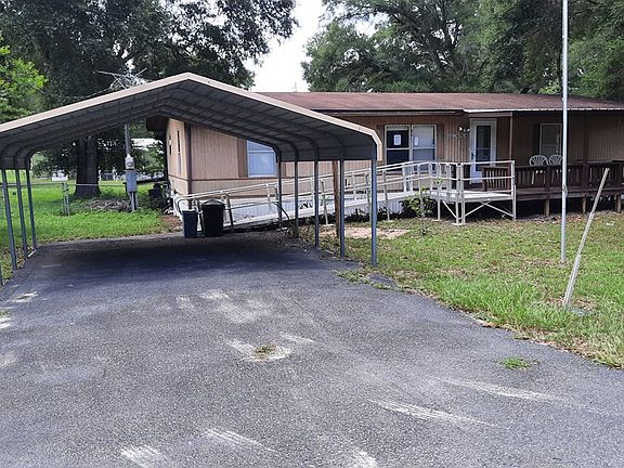 This would be a great first time home, retirees, Snowbirds, and weekenders. There is a covered carport with asphalt driveway, with a very well made metal wheelchair ramp going to the big, covered front porch. There is a screened porch in the back with a good wooden ramp as well. The metal utility shed is a nice size. The backyard is completely chain linked fenced. All three bedrooms have walk in closets The master bath has a large walk in shower for shower bench. The central unit is fairly new, and needs some repair to work. It needs a a refrigerator and new dishwasher.. With carpeting replaced, and some TLC, this will be a great place to call home.