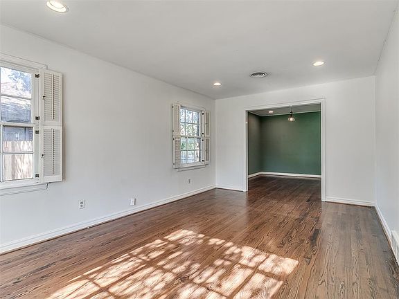 Nestled on nearly 0.4 acres—one of the largest yards in OKC’s urban core—this charming 1951 creekside bungalow is a true gem! Step inside to a sunlit living area featuring beautiful wood floors and a view into the inviting dining room. The updated kitchen boasts a new backsplash and industrial lighting, offering ample space to cook while enjoying views of the expansive backyard.