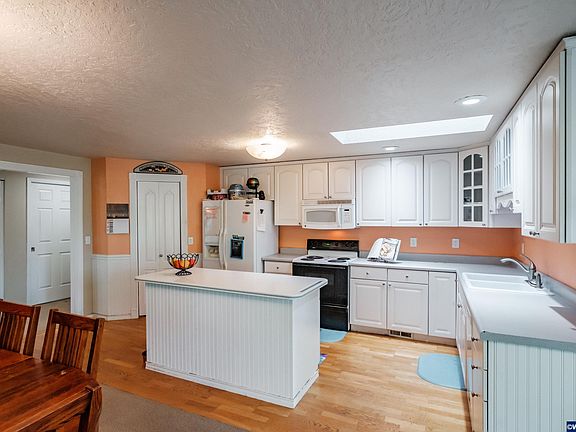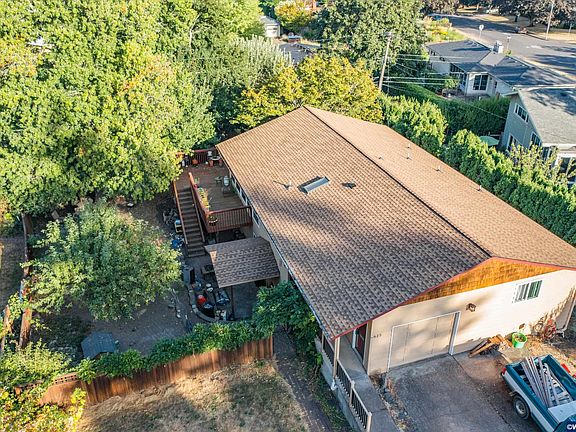 Updated dual living home on large lot. open kitchen & dining w/ center island & skylight, living room wi/ gas fireplace, sliding door to huge deck w/ great valley views. 2 spacious BRs, updated BA & laundry on main level. Lower level features 1 BR family room with efficient pellet stove & 2nd updated kitchen, open to large covered patio. Private & fenced backyard w lawn, mature fruit & shade trees. Newer roof & painting, all vinyl windows, updated GFA heating w/ AC. ADA access ramp, oversized garage.
