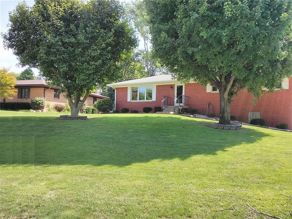 Full brick three bedroom home with full basement is perfectly nestled on large lot with mature trees and gorgeous landscaping. Large living room with limestone fireplace and beautiful bay window overlooking front yard. Cozy family room, w 2nd fireplace, overlooks lush back yard. Eat-in kitchen with gas stove, and all appliances included! Half of the basement is fully finished and is perfect for a rec-room, workout room, or fourth bedroom. This home is immaculately maintained by original owner.