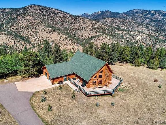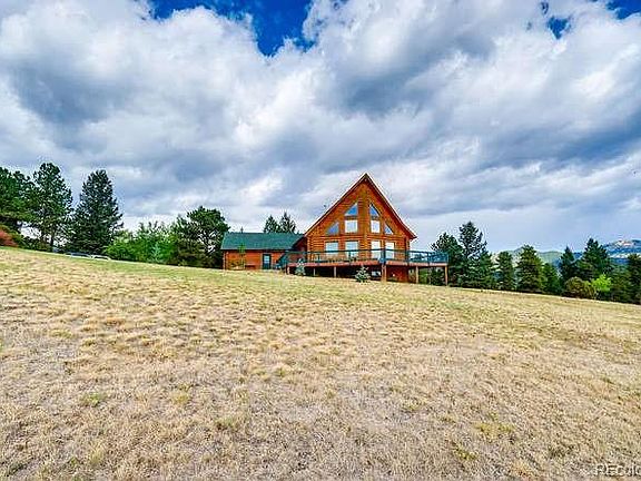 Located just outside Idaho Springs is this Majestic, Breath-taking, Mountain contemporary Log Home on 6 acres of gentle rolling mountain meadows. Unbelievable panoramic views, with over 3,300 finished square feet boasting 4 bedrooms and 4 baths. Hickory cabinets and slab granite highlight the kitchen and an expansive Great Room with enormous wrap around deck provides an unmatched view of the country side. The walkout lower level includes family room, game room, bedroom and bath. An over-sized 2 car attached garage has room for both extra storage and a workshop. Easy commute to Denver, Blackhawk, Central City, skiing & fishing. Home will be sold furnished as shown.