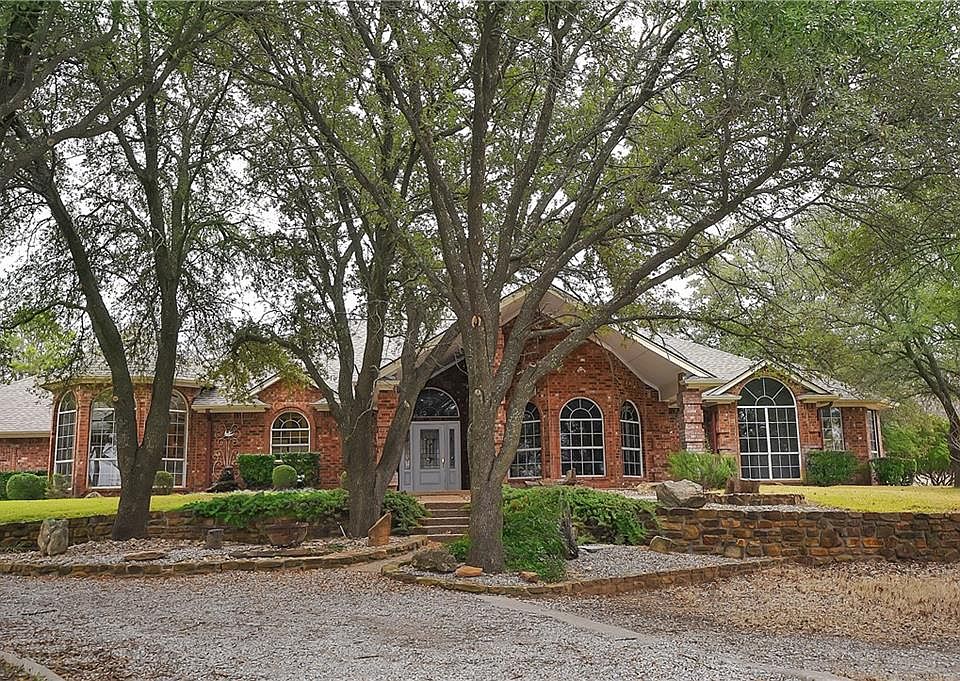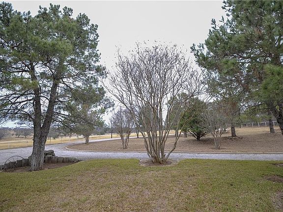 3 3 2 custom brick on hillside surrounded by 10+ acres. Freshly painted and textured interior. See through fireplace in living area. Ventless gas log fireplace in master and second bedroom. Open concept in dining, living, and family room. Kitchen includes custom cabinets, granite counter tops and breakfast area. Raised ceilings through out the home with skylights. New roof and AC 2016. Home is beautifully landscaped with rain gutters installed. Two water wells on the property, washed rock drive lined by white pipe fencing. Property also has metal barn with attached loafing shed. Pond on property. Property is gated with opener.