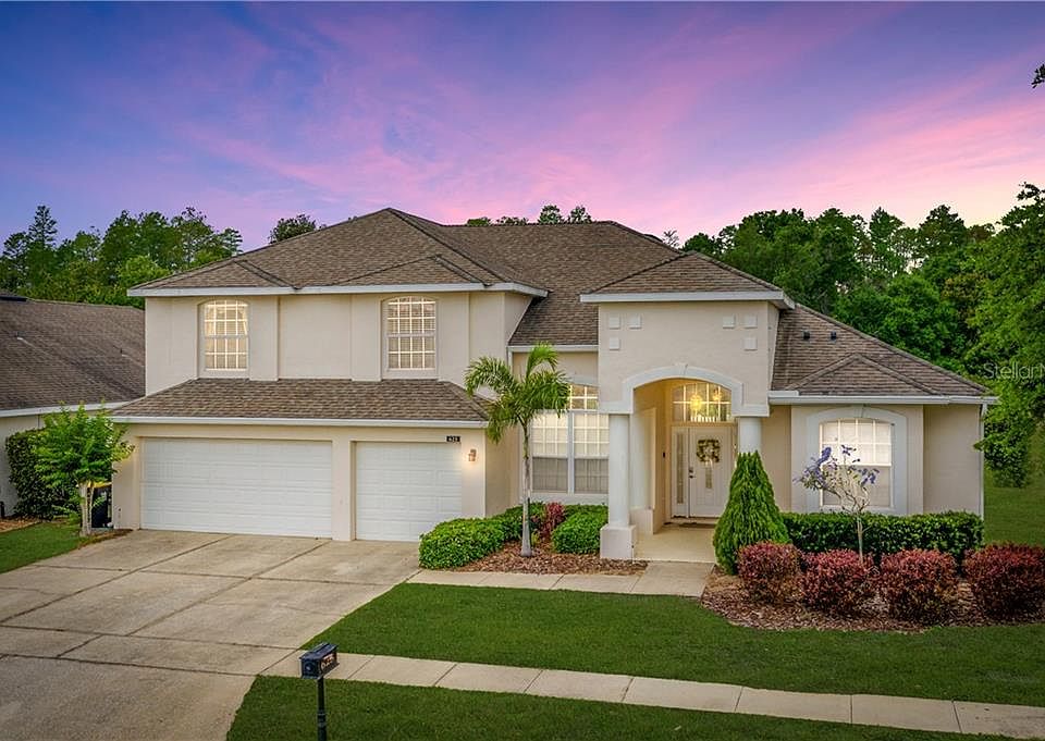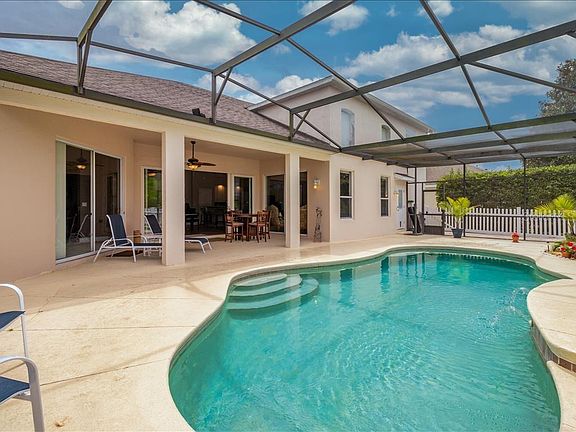 This gorgeous, 5 bedroom 3 bathroom home is situated in the exclusive golf community of Highlands Reserve. This home has primarily been used as an owners retreat and exudes luxury finishes. The AC system was installed new in upstairs (2018) and downstairs (2019). New ceramic tile flooring and carpet throughout. 625 Prestwick is a very desirable Windsor floor plan (one of only a handful in the entire community). With 20' ceilings throughout the open floor plan downstairs and windows everywhere you look, the sense of space is very refreshing. Come stand on the oversize pool deck that faces West and shares some of the best views in Highlands Reserve. Watch the amazing Florida sunsets overlooking the conservation area or from the comfort of your heated pool and large covered lanai. You will find that this 3,600 sq ft home is bright and airy and furnished very nicely. There is a formal dining area on the left as you enter with modern lighting, sconces and panel-wall feature and then straight ahead is the entertainment area. As you enter the large family room with newly added sound deadening panels, large-scale crown molding and baseboards. Remote shades above the television and wired surround sound, makes this an ideal retreat. Open professionally decorated kitchen with all new quartzite counters, tile backsplash and tile island. It is very bright and airy with new "glass wall" w/double sliding doors to lanai leading onto the pool deck, which has also been expanded and fenced. The Master Suite, which is over 50 feet long with a seating area, double closets, twin vanities with high end fixtures and Granite tops, soaking tub and walk-in shower, encompasses the entire right side of the home. This is one that is not to be missed! Schedule a tour today!