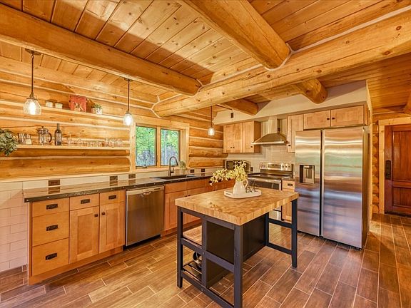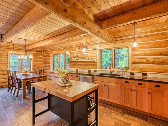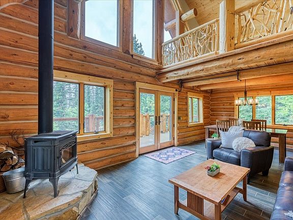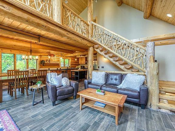 Welcome to your dream retreat! This gorgeous log home boasts breathtaking views and a wrap-around deck, perfect for soaking in the serene surroundings. Nestled on a flat, private, and secluded lot, this property offers the ideal blend of tranquility and convenience—just minutes from town with easy access. Inside, you’ll find an inviting layout featuring 3 spacious bedrooms and 3 beautifully appointed bathrooms. The soaring ceilings and abundance of natural light create a warm and airy atmosphere. Cozy up by the wood-burning stove in the living area, adding a touch of warmth and charm during chilly evenings. Enjoy additional living space with a generous family room and a cozy loft, providing plenty of room to spread out and relax. Surrounded by lush tree coverage, this home feels like your own personal woodland sanctuary, yet you’re just steps away from countless hiking and exploring opportunities right out your back door. With tasteful finishes throughout, this property is truly a must-see. Don’t miss your chance to own this incredible piece of paradise!
