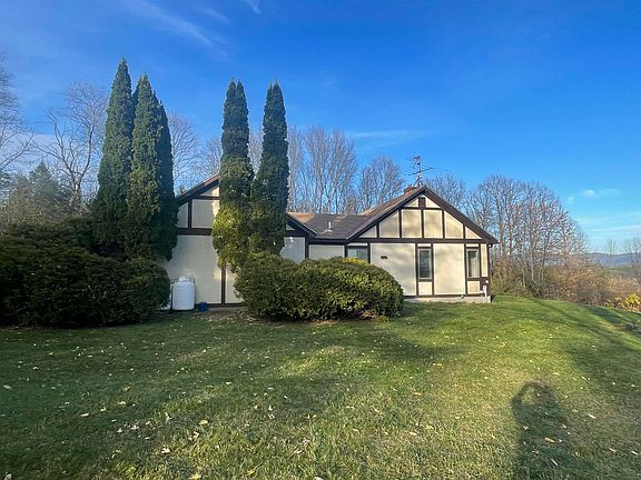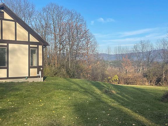 Make this English Tudor style home on 8.88 acres with breathtaking mountain views your new home. Tucked away off the beaten track you will find this home with three bedrooms, three bathrooms, dining, living room with fireplace, the dining area has a brick stone fireplace with gas stove insert and a kitchen with wrap around bar. There is an attached garage with woodshed. Upstairs attic open and could be easily finished off into additional living space. Property has been surveyed. A private spot less than 2 miles from in town Middlebury.