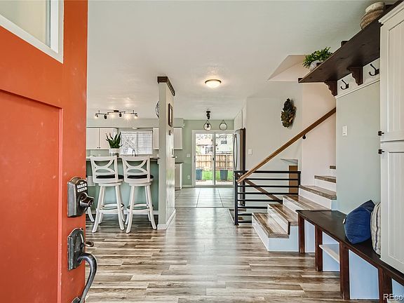 Welcome to your dream entertainer's home! Nestled in a peaceful neighborhood, this stunning home boasts an open-concept floor plan, perfect for hosting gatherings and entertaining guests. The kitchen features Dekton counters, stainless steel appliances, and abundant cabinet and counter space. The large eat-in island provides ample storage and prep space, while the open dining area can accommodate an extra-large dining table for hosting large groups. The three spacious bedrooms in this home are perfect for rest and relaxation. The primary suite easily accommodates a king-size bed with room to spare and features an ensuite bath for added convenience. The backyard is a private oasis, complete with a custom stone patio that has a 25-year warranty and step lights, perfect for dining alfresco and barbecues. The lush lawn provides ample space for lawn games, while the natural gas grill and firepit create a cozy ambiance for summer barbecues and bonfires. The back patio string lights with a timer add a warm and inviting ambiance for evening entertainment. The front and backyards are equipped with a state-of-the-art sprinkler and drip system, ensuring that your lawn and plants are always perfectly watered and maintained. Other notable features of this home include central air conditioning, a newer furnace, and a tankless water heater, ensuring a comfortable living environment year-round. The 120 sq ft outdoor shed with electricity and upper-rafter storage provides ample space for all your storage needs. Location is key, and this home offers the best of both worlds. It is ideally situated between Belmar Park and Addenbrooke Park, offering endless opportunities for outdoor recreation from walking trails to sports fields and playgrounds. Commuting to the mountains or Downtown is a breeze with nearby access to the light rail and 6th Ave. The Belmar Shopping District is minutes away, offering a plethora of shopping, dining, and entertainment options for a night on the town.