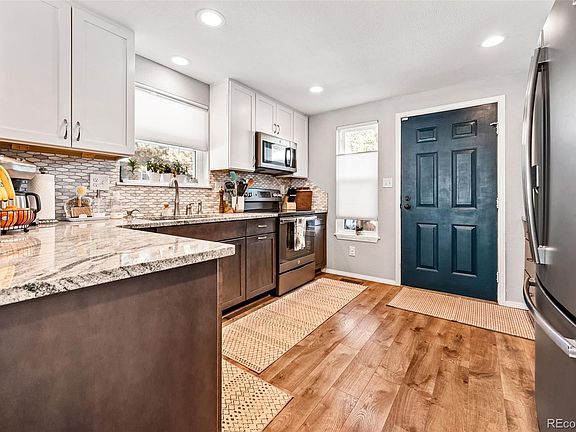 Nestled in a desirable community, this stunning end-unit ranch townhome offers the perfect blend of modern upgrades and comfortable living. This meticulously maintained residence is ready to welcome you home. Step inside to discover a freshly painted living room and dining room, providing a bright and inviting space. The kitchen has been fully remodeled to perfection, with new cabinets, granite countertops and modern appliances. All three of the bathrooms have been completely remodeled with modern style and fixtures. Retreat to the main level primary bedroom featuring new paint, vaulted ceilings, and a closet system. This home boasts numerous upgrades, including all-new windows, paint throughout, custom blinds, and new ceiling tiles. The basement has all-new carpet with a large family room, private bedroom, remodeled bathroom, and a laundry/utility room with plenty of storage. The garage will give you extra storage and security with access through the patio. Enjoy the outdoor spaces with a private patio perfect for grilling, gardening, and enjoying your Colorado evenings.
