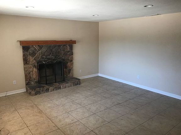 MOVE IN READY HOME! Walk in to this updated and clean home and into the spacious tiled living room with large fireplace. The living room flows into the newly updated and open kitchen which leads to the additional living room space and out to the back patio space where the good size back yard offers endless possibilities for landscape.. All three bedrooms are carpeted with ceiling fans and soon to be installed with new blinds. Both full bathrooms are updated. House has newer evaporative cooler and all newer appliances. The fireplace is being evaluated and a work order will be placed to have it fixed with new insert.
