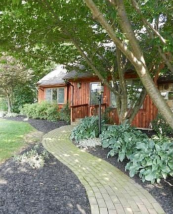 This cedar and stone rustic contemporary home on 2 acres with 500+ feet of road frontage is located in York Township and is in the Dallastown School District, York County. 10 minutes to I-83, minutes to the boroughs of Red Lion and Dallastown. 20 minutes to the Maryland Line. Convenient yet private, it backs up to a large farm ... separated by wooded area. This home is immaculate and by all means ... this is not your average house! Be sure and check out some of the photographs! The cedar and real stone exterior is in great shape and so is the multi-tiered deck with steps and built in bench. Quality windows and doors. About the only thing you might want to change out is the kitchen countertop, which is laminate and in one spot chipped. Otherwise ... the garage has workbench, auto opener and there is enough room to add that garage for your vehicles/RV/Harley (must meet township requirements).The approximate square footage listed of 2333 includes only the finished living area. There is another 600 +/- square feet in the lowest level (walk-out basement) that can be utilized for more living area should you need it. The shed on the property has electric and has lights. There is a bonus room on the first floor that could be used as a guest room but is currently being used as a schoolroom and has a chalkboard-painted wall. Brick walkway to front door into Living Room with real stone fireplace ... above is the Loft looking down on Living room. Family room, dining room with lots of windows looking out to the rear (like sitting in a tree house!). Kitchen with counter bar and brand new top-end Hansgrohe faucet at sink. Mud room, bonus room, 1st floor Laundry room with pantry shelving. 1st floor Master bedroom. Full bath.Second floor has large loft, full bath, 2 bedrooms.Walk-out basement consists of office, recreational area, half bath. Utility room, storage room. Beautifully landscaped! Updated water system includes new well-expansion tank, UV light and four separate filters for great-tasting water without paying a city for it. There is a newly installed hybrid electric hot water tank that has been working well and saving money, as the previous hot water tank was propane. Propane hook-up is still ready for you if you choose to go that route or supply fuel to the heaters in the basement. Cherry trees, raspberry brambles, and wineberries abound on this property and two raised garden beds with easy access to a water supply let you live off your own land (at least somewhat!). Continue reducing your carbon footprint by utilizing the compost bins located below the parking area toward the shed. Since we started composting, we only have one or two bags of refuse to take out for the trash hauler each week! Ceiling fans are located in the bonus room, dining/sun room, living room, great room, and master bedroom. Both upstairs bedrooms have beautiful hardwood floors; the mud room entry at the back door has easy-to-clean laminate that continues into the kitchen. New stainless steel LG range/oven and microwave were purchased in late 2011. Well water was tested in 2014 by Wells Laboratories and checks out perfectly for potability. There is pantry storage located in a large cabinet in the laundry room; we store all of our dry goods in there.