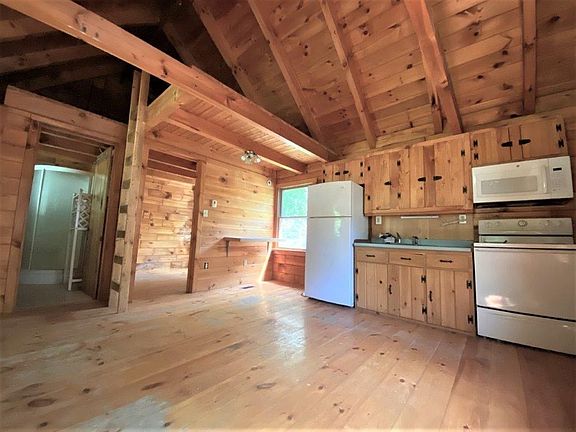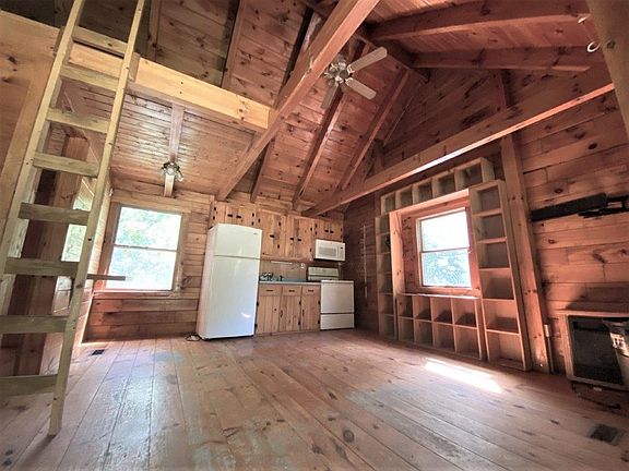 This one bedroom log cabin sits on the edge of 69 acres, enjoy the farmers porch. Appliances are staying with no warranties. Metal hut for extra storage or carport. There is an additional land across the road .