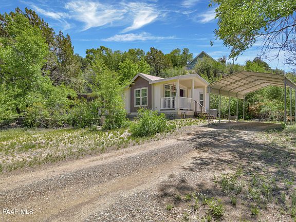 Fabulous Manufactured Home Built in 2007 with a Super Private Setting Surrounded by Mature Trees on a Spacious 0.5 Acre Lot! Tucked Away in a Quiet Neighborhood Yet Only Minutes to Downtown Prescott! Open Concept Floor Plan with Vaulted Ceilings, Kitchen w/ Recessed Lighting, Large Windows, Laundry Room, Detached Carport, and All Appliances Convey. The Covered Front Porch is a Perfect Spot to Sit and Enjoy Prescott's Mild 4 Seasons. Outside You'll Find Multiple Storage Sheds Plus Plenty of Room in Yard to Work on a Garden and Park the RV & Toys. Additional Features Include All Electric Home, Central Air, Private Well, No HOA, and Much More! Hurry Come See this Property Today!