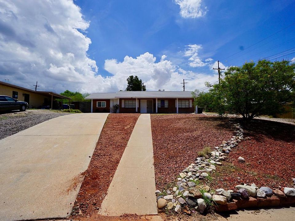 Terrific 4BD/2BA brick ranch on Tucson's east side. Absolutely huge 1/4 acre lot up on a little hill with a large fenced backyard with grass and basketball court and 1 car garage/workshop! No neighbors to the S, side gate entrance in case you needed to bring items to the back. Updated kitchen w/corian countertops, jetted master tub, new carpet, new paint, extra bonus room in back for multiple uses. Great location, convenient to shopping, transportation and schools. A pleasure to show, won't last!