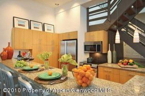 ALL NEW KITCHEN - Summer 2010! Sophisticated 2-story townhome - renovated in 2007 and fully furnished/accessorized in a contemporary style. Views of Ajax from master bedroom, A/C in master. Beautiful grounds. Small, quiet complex. Adjacent to Glory Hole Park. Walk to gondola, town center, Aspen Club easily. Pool, spa, resident manager.