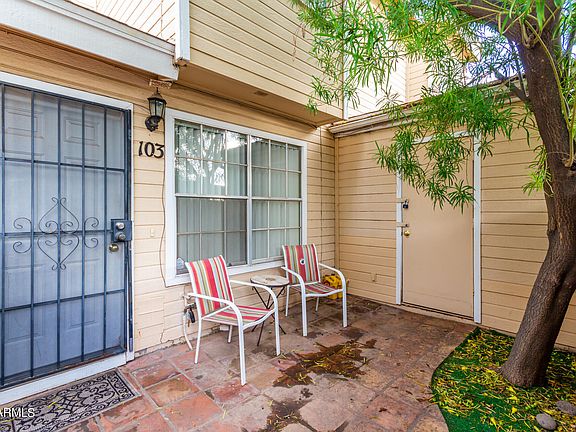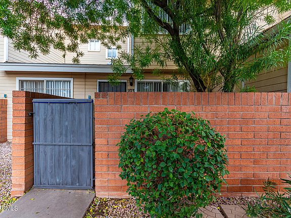 Move-in ready cozy 2 bedroom townhome in Mesa. Downstairs features bedroom number one including a murphy bed and wardrobe closet. Nice, quaint living room walking into the kitchen that exhibits beautiful cabinetry and stainless steel appliances. Entire second floor is a spacious master suite with vaulted ceilings, window seating, walk-in closet and second closet or work area. Endless options! Property is right across from the oversized community pool. Close to light rail stop and Mesa Riverview with shopping, dining and all the entertainment!