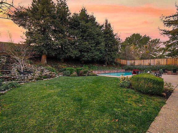 Stunning upgraded home located in the desirable Twin Creeks neighborhood. This fabulous floor plan boasts a formal living room, dining room and highly sought after downstairs bedroom with full bath. Relax and enjoy quality time in the expansive family room with a cozy brick fireplace. The beautifully appointed chef's kitchen overlooks the amazing backyard and offers stainless steel, built-in appliances, 6-burner gas range, stove pot filler faucet, tiled backsplash and breakfast nook. The light and bright master bedroom suite features spacious closets and a spa-like master bath with a separate vanity, walk-in shower and separate soaking tub. The two additional bedrooms are generous in size and share a full bath. This entertainer's backyard paradise is a dream featuring a spectacular hillside waterfall feature, towering redwood trees, sparkling pool with spa, built-in outdoor fire pit, large patio and lush lawn all perfect for entertaining with family and friends. Additional highlights include three car garage with new epoxy flooring and EV car charger. This amazing home is conveniently located near parks, recreation, City Center and within the top-rated San Ramon Valley school district. Easy access to freeways.