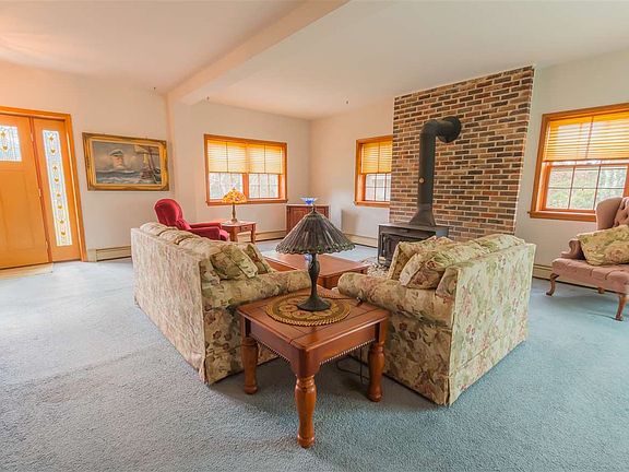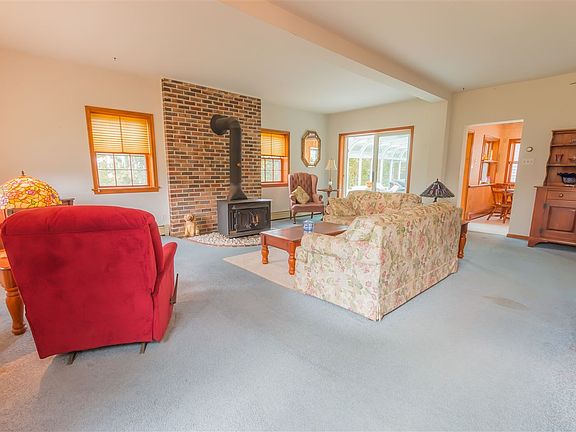 - Wood Burning Stove, Wall to Wall Carpet, Tile Flooring