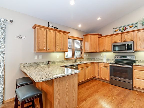 This beautiful ranch is located in a family-friendly neighborhood. Like-New! The main level has plush carpet and laminate floors, vaulted ceiling, and features a gas fireplace. Also on the main level are 3 bedrooms, 2 full baths, and laundry. The kitchen features granite counters, granite backsplash, and stainless steel appliances. Appliances stay with the home. The master bedroom is located on the main level and features carpet floors and walk-in closet. The attached master bath includes vinyl floors, solid surface counters, and one piece shower. The finished lower level features a wet bar, bedroom, full bath, office/study, recreation room and storage area. Outside you'll find a treated wood deck overlooking the yard with chain link fence. Call or email today for a private showing.
