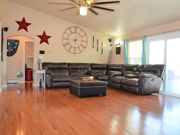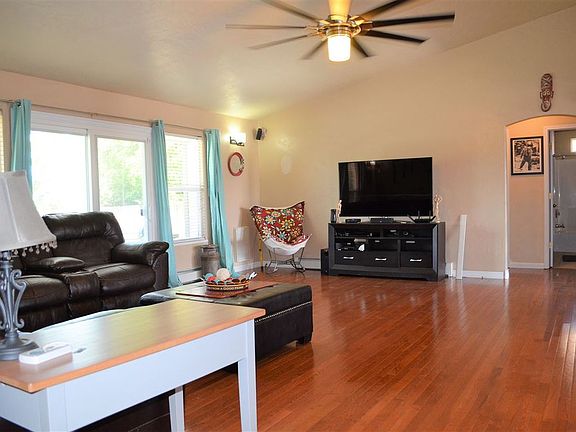 Sit on your covered front porch and soak in the views of the Grand Mesa! Great North East location! This 3 bedroom, 2 full bathroom, 2 car garage home has a fantastic layout! Split floorplan, nicely sized bedrooms/bathroms throughout, and huge living room with vaulted ceiling. Beautiful kitchen with amazing views of the Grand Mesa, breakfast bar, gas stove, tile backsplash, and all kitchen applicances stay. Hardwood floors in living room, kitchen and dining area. Large back yard with overed patio. No homes behind you (backs to 30 Rd).