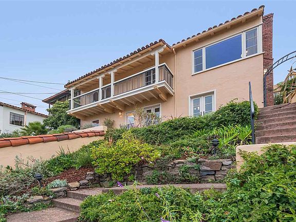Lovingly maintained since 1936, this gracious Mediterranean villa is set around a peaceful garden courtyard with a trickling fountain. Both levels of the home boast expansive views of San Francisco and the Bay Bridge. An over sized living room offers 2 sets of French doors leading to the courtyard to the east, Bay views to the west, a vintage fireplace, and an exquisite wood-clad, coffered ceiling. The formal dining room opens to a sun-drenched, west-facing balcony. The eat-in kitchen is graced by custom, handmade tile on countertops and backsplashes, as is the hall bathroom with its hand-plastered walls. There are 4 bedrooms, 3 of which have French doors leading to individual patios, and 3 full baths. The grandeur of Tilden Park is just blocks away, while Solano Avenue's convenient shopping and dining district, the Gourmet Ghetto, North Berkeley BART, and the UC Berkeley campus are just minutes away!