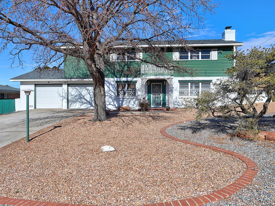 Nestled in a serene neighborhood, this meticulously maintained home offers modern upgrades and timeless charm. Current Interior upgrades include a new stairwell banister (2022), full interior painted with in the last year, refinished wood floors on upper level, newer carpet, a mostly remodeled kitchen, and updated porcelain tile(2022). The curtains will convey with the home and they are insulated curtains. The exterior upgrades include new gravel and a new wall (2022), an asphalt shingle roof (2023), and a newer A/C. Water access in available in the back yard but is not turned on. Plus, an optional country club nearby offers parks, golf, tennis, pickleball, and swimming. Less than 10 minutes away from Sandia national labs and Kirkland Air Force base.