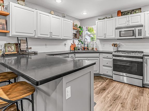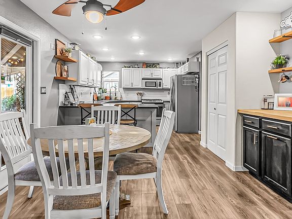 REMODELED 5-bedroom MASTERPIECE! Find yourself in awe of this incredible 5-bedroom, 2 1/2 bath stunner boasting 2248 square feet! TWO living spaces (and a third living space in the enclosed back porch w/vaulted ceilings and ultimate wow factor!), Main level grand-sized primary bedroom boasts vaulted ceilings and a delightfully remodeled 5-piece bath en-sute. There are 20 ft grand cathedral ceilings in the living room w/giant windows overlooking your majestic mature trees. All three bathrooms are exquisitely remodeled, and a remodeled chef's kitchen to die for (w/gas range, all stainless-steel appliances, gorgeous countertops and cabinets, and even a separate coffee bar). Impress all your guests with the elegant formal dining room for dinner parties galore and a breakfast bar, spacious breakfast table space, and an outdoor living space in your enclosed back porch. There is also an additional dry bar under your covered back patio. Large north facing backyard w/mature trees backed up to walking trails! Besides the main level primary bedroom, there are 4 more storybook-like bedrooms upstairs w/a remodeled full bath. (The 5th bedroom is also the bonus room, and can be used as a second indoor living space). Adorable 1/2 bath downstairs for gests. Pride in Ownership to the Nth degree. Even the laundry room and mud room look like they jumped out of Martha Stewart magazine! Buyer to verify all info and measurements.