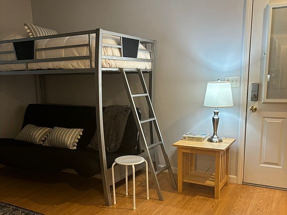 Quiet Cul-de-sac, Minutes walk to town, 1 BDR Queen, with additional 2 top bunks above futon seating in common area, 1 full bath, full kitchen and microwave, 1 car attached garage space, seating on front & back porch. Pets allowed with restrictions. SHORT TEAM LEASE AVAILABLE: FOR SCHOOL YEAR, SPECIAL EVENTS, CALL FOR MORE DETAILS Please submit the form on this page or contact Pets Allowed with Restrictions Short Term Available