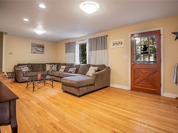 This 3-bedroom ranch home sits on 4.5 acres. A private country setting that is partly wooded with a fresh running stream. Two bedrooms on the main floor with an additional 3rd bedroom in the second-floor dormer. Two newly remodeled full bathrooms on the main floor. Living room and 2 bedrooms have hardwood floors. Included are 3 multi-use outbuildings for all your storage needs. Detached garages,1 car garage and one 2 car garage. A new Aluminum rust-free roof installed on the house in 2021. Enjoy the backyard view from the screened in patio. Kitchen includes all stainless-steel appliances with a eat-in kitchen and large bay window. For your winter enjoyment there are two wood burning fireplaces, 1 in Living room and 1 in basement and 3 wood burning stoves. Basement includes a partially finished additional room with fireplace, a laundry room with washer/dryer included and an additional shower for your convenience. New 2022 BioKinetics small flow treatment facility septic system.