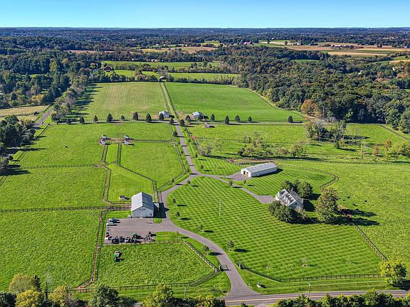 An incredible property and opportunity in scenic Bucks County!  These 98 acres of prime land with incomparable views, sweeping pastures, and gated entrances awaits the next steward to continue the tradition of the renowned Elk Creek Farm, a Black Angus breeding farm.  This remarkable compound includes a spacious Cape Cod house, a guest or caretaker’s apartment, the main barn, three Morton buildings and numerous run-in sheds and the potential to add another dwelling. The beauty of the land is unparalleled with expansive lawns, rolling pastures and panoramic views. This home is designed for comfort and entertaining.  Light filled, and spacious, with an open floor plan for entertaining. The kitchen is a central gathering place with marble countertops, center island, breakfast room area and a breakfast bar peninsula open to the living areas. A primary bedroom/bathroom suite and another bedroom with door into hall bath are on the main floor. Upstairs are two more large bedrooms and a full bath. There is also a paver patio from which to enjoy views, and a full basement with walk-out.  Above the 2-car garage is an apartment with a separate entrance.   A multi-use area to suit your needs, it has a living room, full kitchen, a bedroom with walk-in closet and bathroom. The agricultural amenities are the focal point of this exceptional property. The main heated barn was designed to support a breeding operation with a bluestone patio at the covered entrance and an air-conditioned office and half bath.  Four stalls, designed for stallions, have adjoining paddocks, hayloft, and wash stall.  One Morton building houses the equipment barn with run-in and 3 stock and 2 stalls. Two other Morton buildings also have run-ins and enclosed stalls. There are heated, automatic waterers, paved roadways and no-climb fencing.  Everything here is first quality and offers a complete package to accommodate your operation.  Experience beautiful living with all the historic beauty that Bucks County has to offer, from recreational and cultural activities to fabulous entertainment and dining venues located between New Hope and Doylestown – all while being a comfortable distance to Philadelphia, Princeton, and New York.  The possibilities are endless.