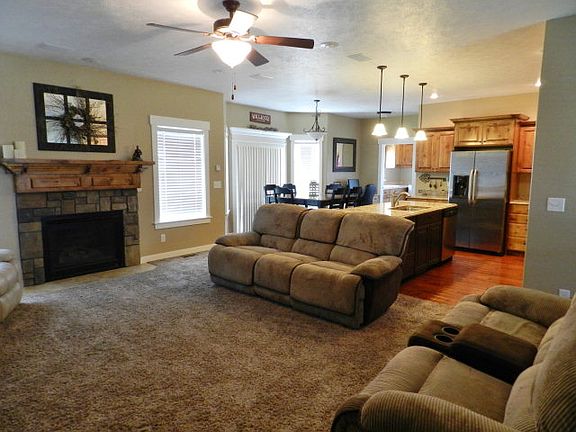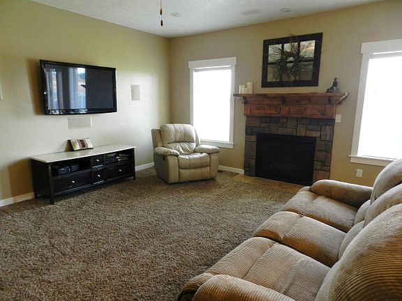 BACK BECAUSE OF BUYERS FINANCING!!!! This immaculate home has all the extras you have been looking for! You will love the beautiful solid wood front door when you walk in. The kitchen has granite counter tops, stainless steel appliances, hard wood floors and built in desk. Laundry room has sink with lots of cabinets and counter space. Great room has surround system. Main floor is set up with audio in each room. You will love the tall 12 foot ceilings in the bedroom or office area. The master bedroom and bath is amazing. Master bath has his and hers vanities/sinks, corner jetted tub and gorgeous tiled shower. In the basement you will find a family room with a fun built in play area for the kids. The awesome theater room has tiered seating with 7.2 audio surround sound and wet bar. Lots of storage with cold storage room, two bedrooms and a full bath complete the basement. The garage is over-sized and amazing with finished epoxy floor, alder cabinets, insulated, painted and heated The yard is landscaped nicely with full vinyl fence, full sprinkler system and large RV parking area. BETTER THAN NEW, MOVE YOUR STUFF IN AND RELAX.