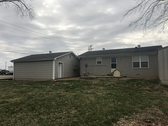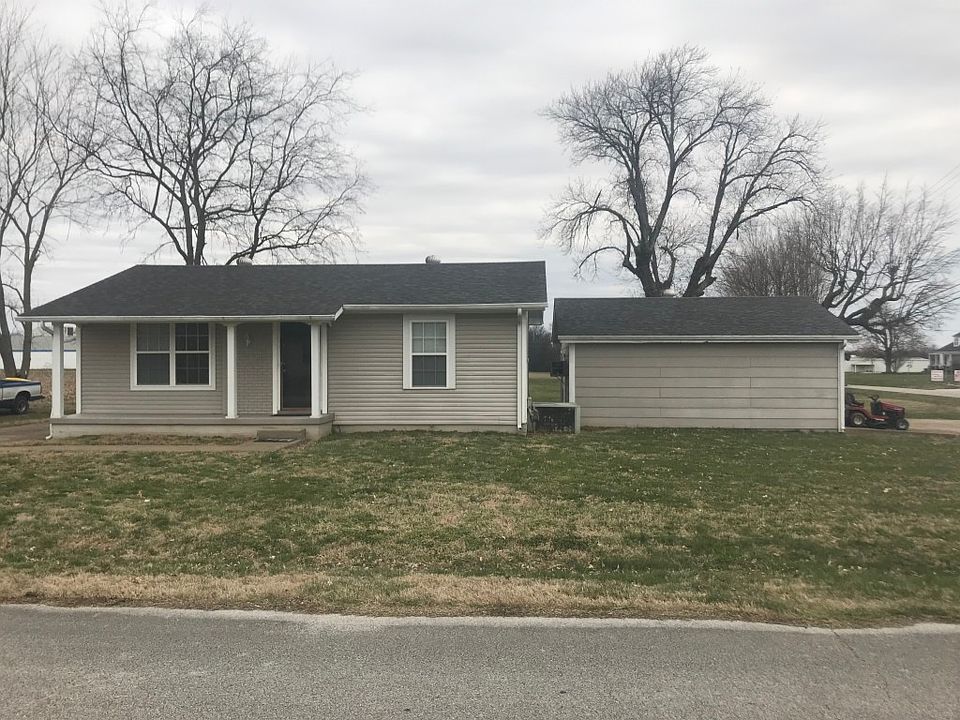 Brick two bedroom house on corner lot with 2 car detached garage.