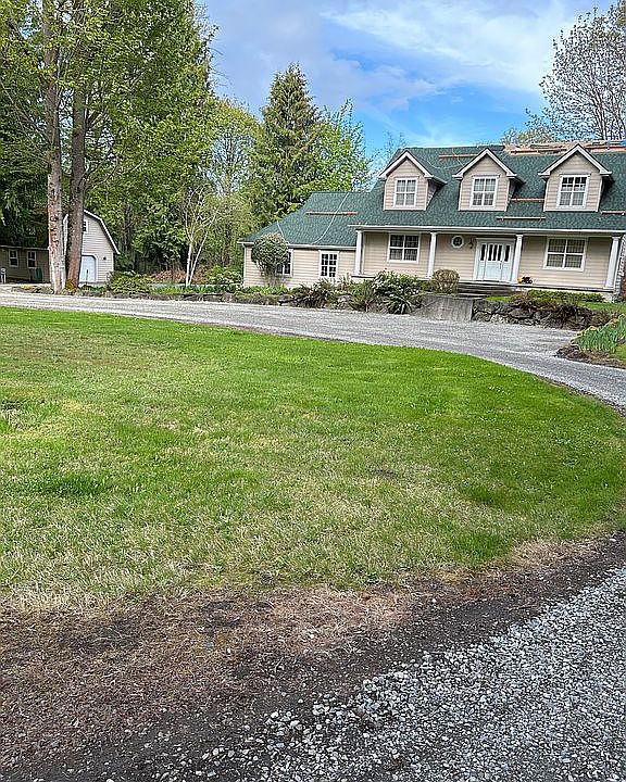 Two story,Cape Cod Style, with dormers and pillared porches front and back. Dungeness River runs through through property. Has separate additional 20x20 barn look garage with upstairs storage.
