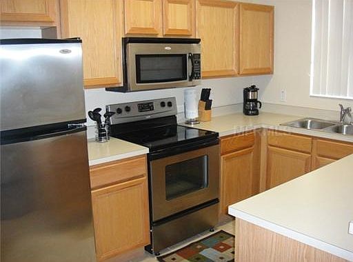 STUNNING, Immaculate, Newly renovated and updated Townhome. FULLY-FURNISHED, & move-in ready spacious 4-bedrooms, 3 full bathrooms, covered patio, in the GATED Community Resort style Regal Palms! Step onto the front porch to see the long foyer and be greeted with an open living space, the big living room, & beautiful open kitchen with quartz counter tops, stainless steel appliances, deep stainless steel sink, backsplash & modern 42"cabinets with crown molding. Full bathroom on the first floor with access from the foyer, & the bedroom, flowing together with the living room area. Laundry tower on first floor next to the storage area under the stairs. No CARPET, modern vinyl floor and wood staircase. Downstairs this floorplan has a private door with access from the outside located in the bedroom. You can head through the sliding glass doors out onto the covered patio & relax the beautiful afternoons in Florida. Upstairs you will notice the high ceiling. The spacious master suite upstairs has a spacious closet, & a master bathroom with granite counter top, vanity space for your small bench. There are two additional bedrooms upstairs, both share a full bathroom in the hallway. Could be a turn-key for short term rental. Please note that this community bans long-term leasing, maximum of 90 days rental, use it when you want and then rent it out the rest of the time or if you like, occupy your unit 365 days a year as an Owner. Regal Palms is a resort style community with many amenities such as fitness center, Spa, huge pool with water slides & lazy river, poolside Tiki bar, volleyball court, playground, restaurant, ice cream store, arcade & much more. The HOA (Association fees) includes external maintenances, pest control, cable, landline, trash, lawn care, 24 Hrs. Manned security gate. Regal Palms is a well-known resort located close to a variety of shops, restaurants, & supermarkets, just a couple of minutes to Orlando, parks & other attractions, easy reach of all Central Florida activities, shopping malls, Orlando international airport is just 35 minutes away and 90 minutes to the coast. Do not miss this amazing opportunity, and Own a piece of Paradise in Central Florida.